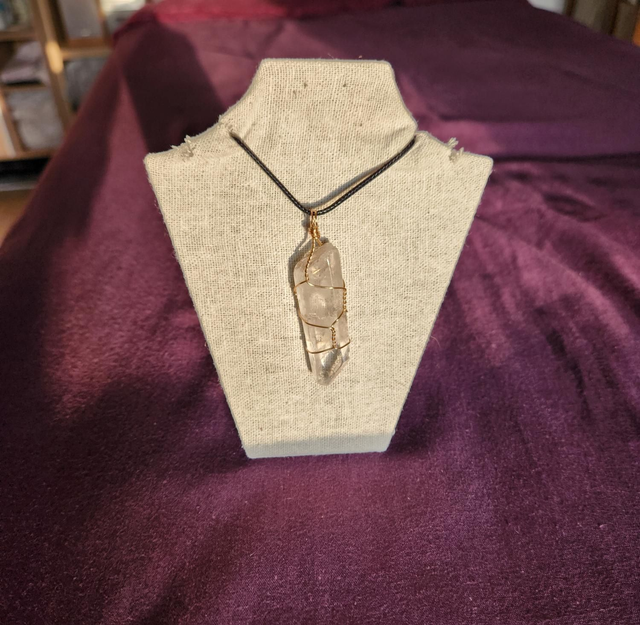Collier pointe en cristal de roche.